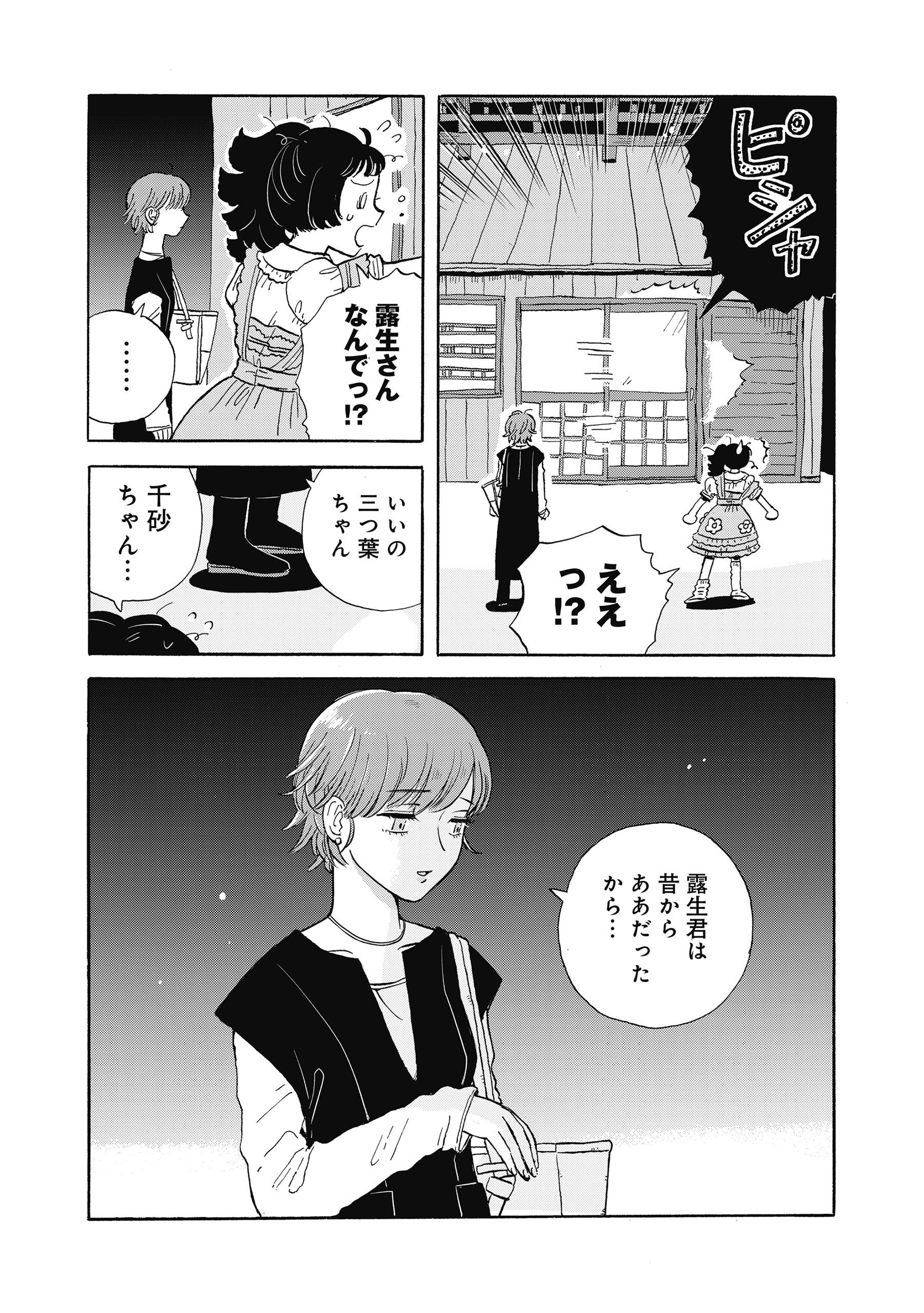 人間社会で暮らすたぬきの女の子【三つ葉】。3時間しか人間に化けていられないので、アルバイトもままならず貧乏暮らし…。優しい人間の青年【露生】との出会いから、彼女の運命は動き出す…