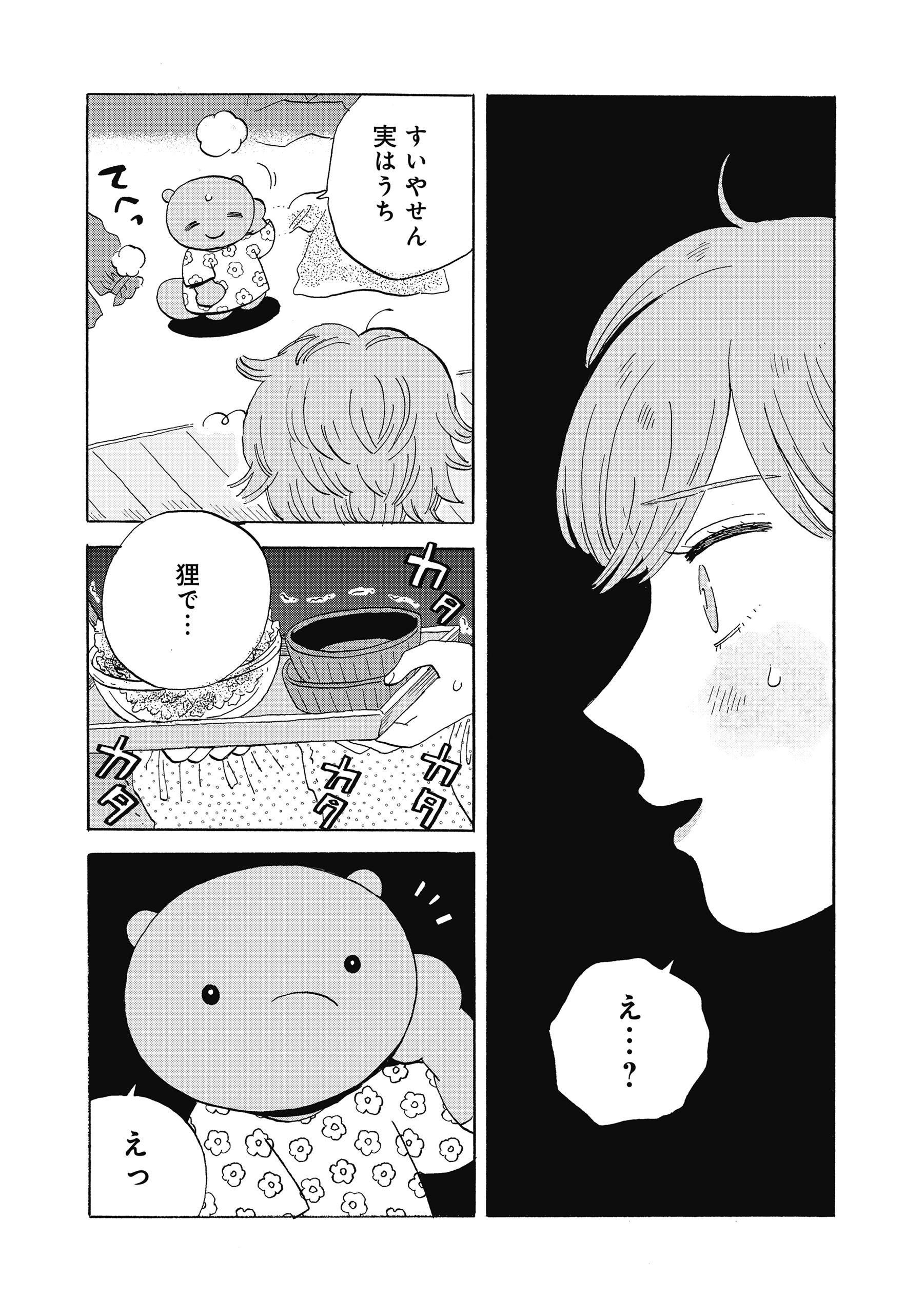 人間社会で暮らすたぬきの女の子【三つ葉】。3時間しか人間に化けていられないので、アルバイトもままならず貧乏暮らし…。優しい人間の青年【露生】との出会いから、彼女の運命は動き出す…